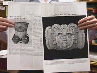 Reviews and product comparisons of Lexmark, Hewlett Packard, QMS, and GCC tabloid-sized laser printers. Suggestions on how to obtain the best results. More samples of the quality of the Lexmark Optra N at tabloid size. Since this is cheap paper the image on the back of the page shows through. With paper of a heavy enough coated stock then the image will be better, with no show-through either. Curious about the images? The one at the left is a mammiform tetrapod vase, dating to the Proto Classic period of Maya civilization, which is about A.D. 100-150. The image at the right is a 4th-5th century cache vessel. More information on paper for the Optra N. Suggestions for better paper. These are two chapter title pages from an 18-chapter coffee table book which covers 2000 years of Maya ceramic art. Today, as we enter the new millennium, 600 dpi (such as the Lexmark printer and most Hewlett Packard printers) is not adequate for printing photographs. Lexmark and HP both make excellent laser printers (our office has several of each) but a newer generation of laser printers from QMS and GCC are far superior for printing photographs in black-and-white. We review the QMS 1200 dpi laser printer and the GCC 800 dpi monochrome laser printer on www.laser-printer-reviews.org. GCC also makes a 1200 dpi black-and-white laser printer.